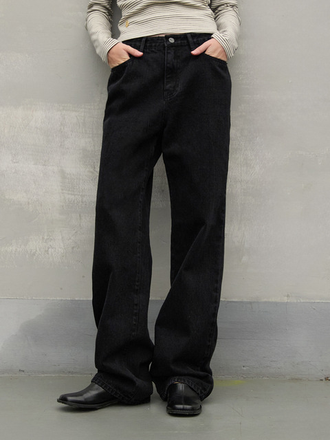 [와르 포 우먼] [기모 선택] [-6cm 숏버전 추가] W50 와이드 데님 팬츠_다크블랙