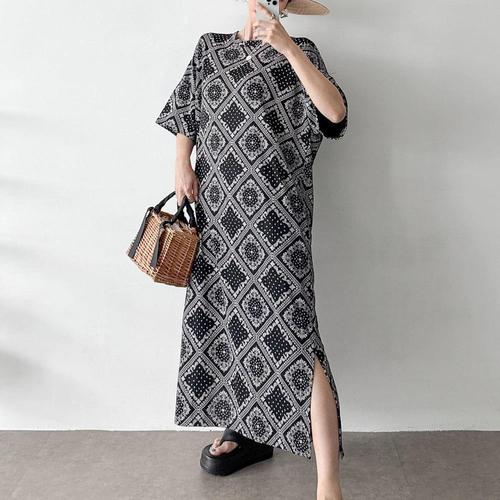 [다잇템]여자 반소매 반다나 휴양지룩 박스핏 롱원피스