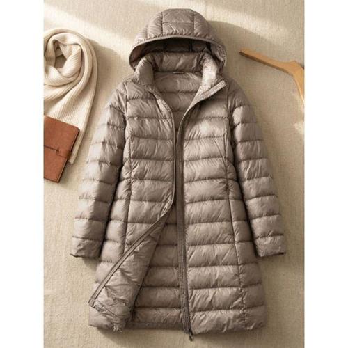 여성 경량 롱 패딩 오리털 보온 가벼운 덕다운 루즈핏 간절기 아우터