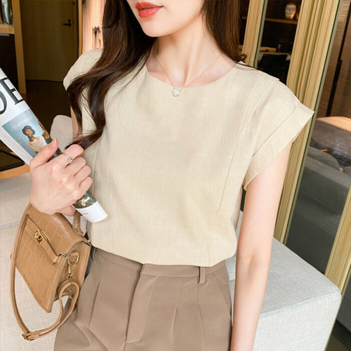 여자 민소매 티 셔츠 셔링 여름 빈지 린넨 블라우스 모시 나시 앤크 BE5