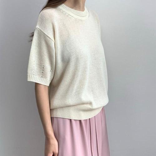 Destijl HC06 찰랑찰랑하고 뚝 떨어지는 엉덩이길이 루즈핏 린넨 라운드 반팔 니트티 D2523sw10