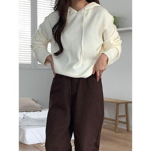 [샵앤]여성 베이직 무지 후드 니트 티셔츠 21DS-WKN-4886-아이보리