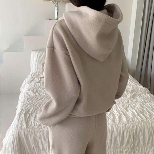 [옷자락]여자 무지컬러 도톰 기모 후드티 밴딩팬츠 세트