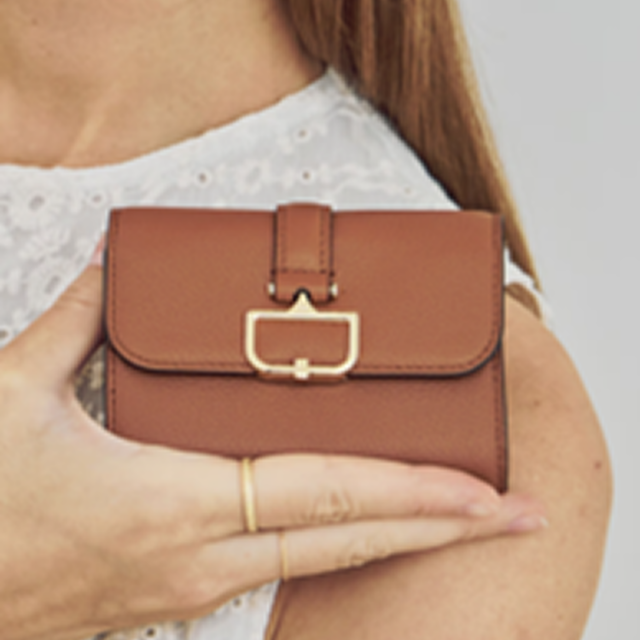 끌로에 라이트 탄 가죽 미니 트리폴드 지갑 CHC21WP946F57 26X