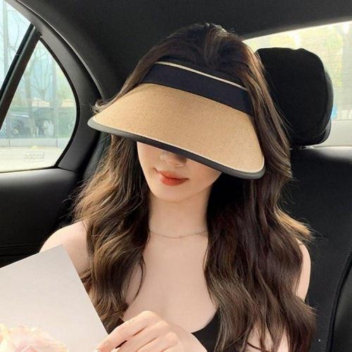 여성 밀짚 챙큰 썬캡 휴대용 자외선차단 WFLYCOX