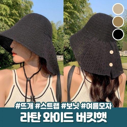 버킷햇 챙모자 밀짚모자 여성 블랙 벙거지모자 라피아햇 WFLYM30