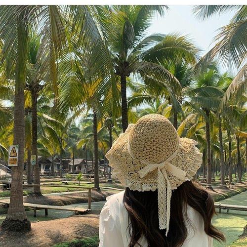 밀짚 썬캡 여성 모자 휴양지 두건 WFLYCOU