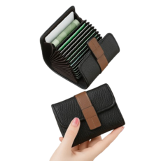 Coucoujimin 고급스러운 소가죽 여성 럭셔리 3단 카드 반지갑