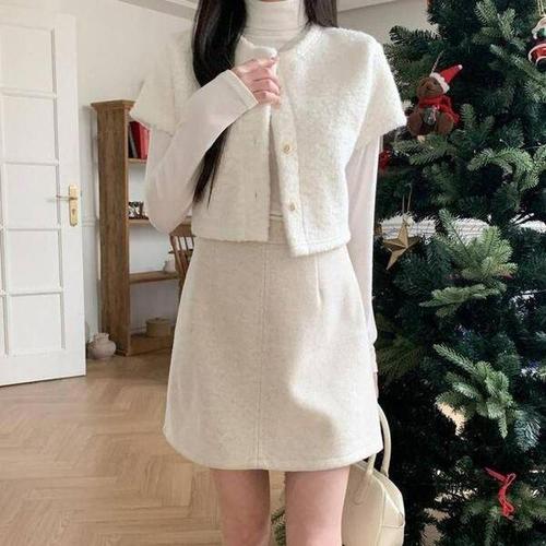 [셀러허브_여성트랜드패션]ONM 니트 반팔 트위드가디건 여성가디건 크롭가디건
