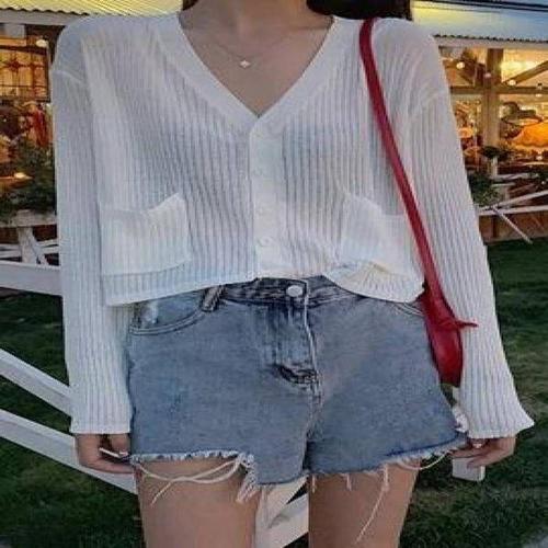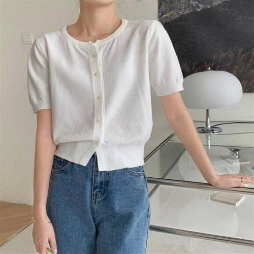 샵앤) 국산 여성 여름 퍼프 펀칭 반팔 니트 가디건 WDM-WCD-2LCBB1036