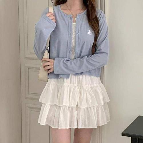 [셀러허브_여성트랜드패션]ONM 레터링 긴팔 자수 반팔가디건 세미크롭 여자가디