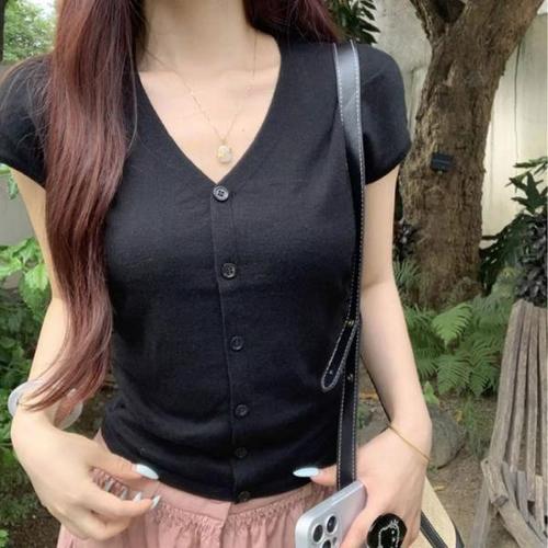 [센트럴몰]V넥 반팔 니트 가디건 여성 여름 탑