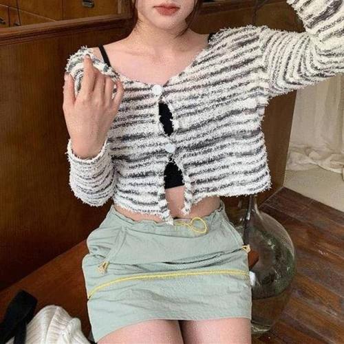 [셀러허브_여성트랜드패션]ONM 크롭가디건 반팔가디건 가디건 부클 니트가디건