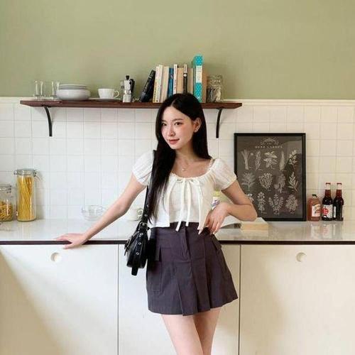 [셀러허브_여성트랜드패션]ONM 온나핏 투토르 리본 퍼프 크롭 반팔 가디건