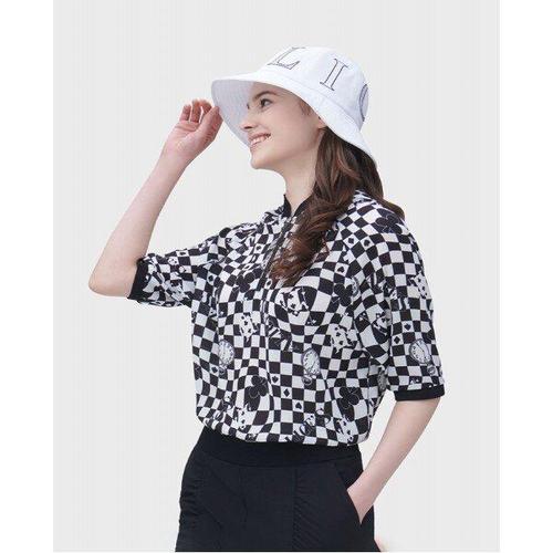 [디즈니골프][디즈니골프] 여성 앨리스 반집업 체크보드 반팔 후드 티셔츠 DN2LTS038