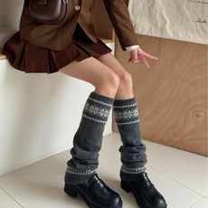 젬버트 빈티지 여성 눈꽃 패턴 두툼 울혼방 레그워머 발토시