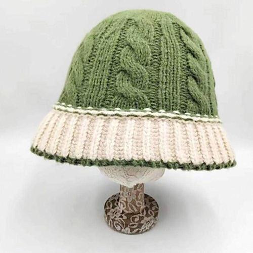 여성 겨울 투톤 니트 스웨터 꽈배기 버킷햇 벙거지 모자 WFLDGGO
