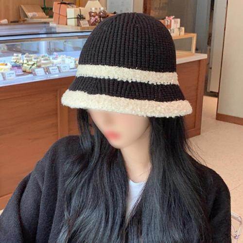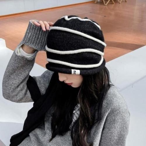 여성 핸드메이드 니트 배색 스트라이프 벙거지 모자