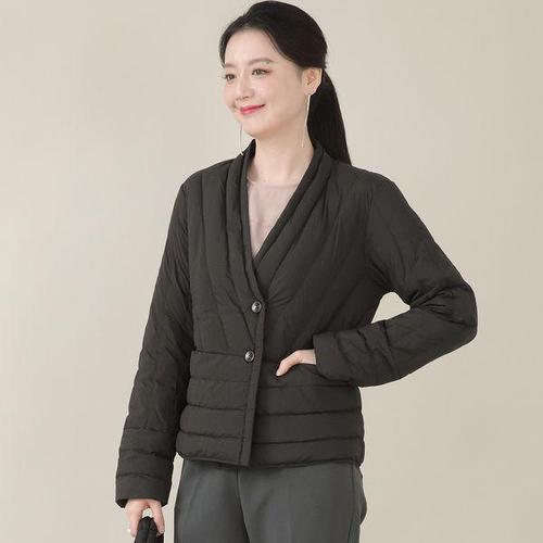 [애비뉴투지]엄마옷 브이 누빔 가로 퀼팅 단추 주머니 여성 봄 가을 경량 가디건 자켓 J10553