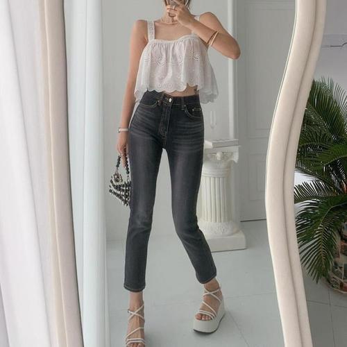 [다잇템]여자 세트 혁대 자수 검정 블랙진 진 청바지 (11035316A)