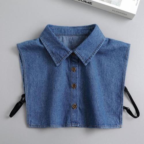 [다잇템]여자 블랙진 데일리 투컬러 카라 진 셔츠 (10142255A)