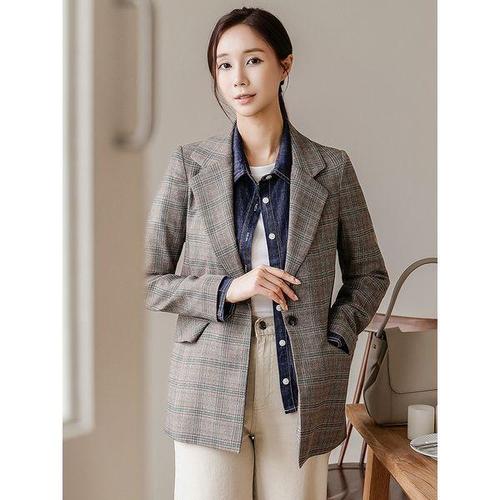 ORZQU 가을겨울 여성 캐주얼 빅사이즈 체크 모직 정장넥 자켓 오피스룩