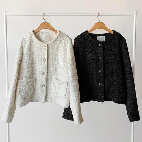 [제작] 클래식 홀스빗 라운드넥 루즈핏 트위드 자켓 83892 빅사이즈 여성의류
