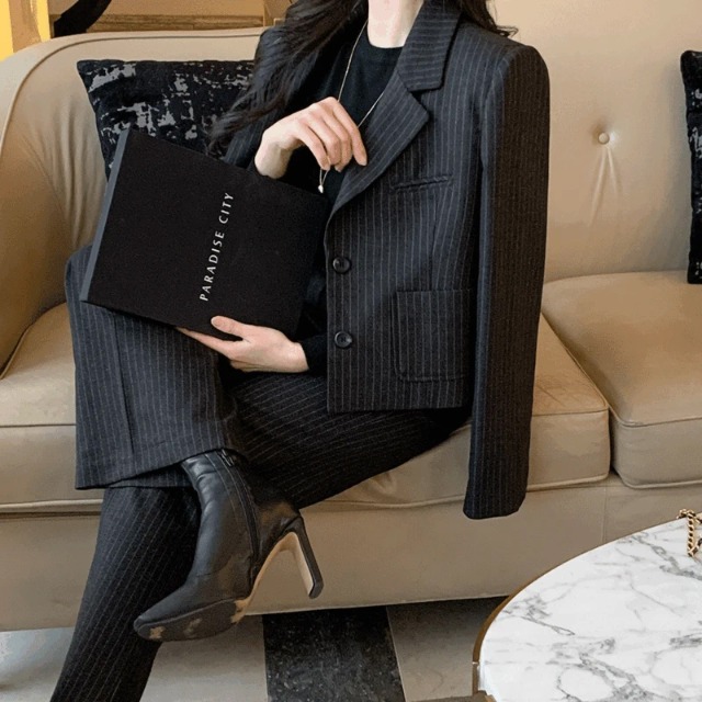 SET 여성 케인 더블 가을봄 정장자켓+세미통팬츠 세트