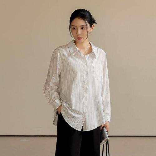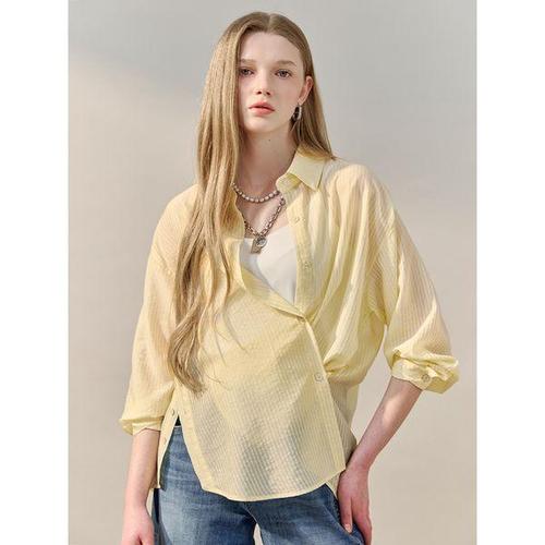 [마쟈]시어 스트라이프 사이드 버튼 루즈핏 셔츠