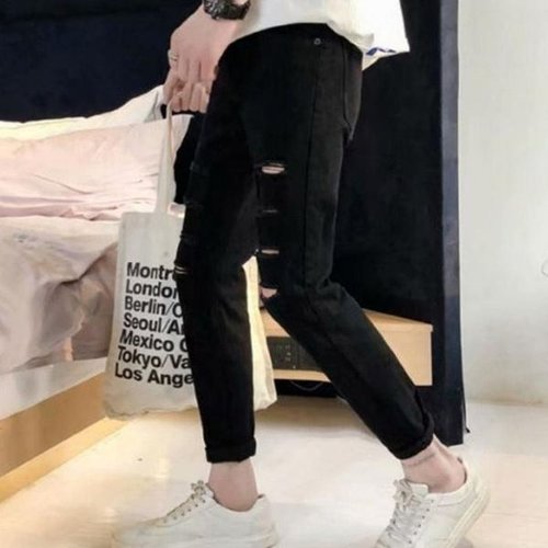 [셀러허브_여성트랜드패션]남자 남자청바지 남자와이드팬츠 컷팅 스키니 남자데님팬츠 남자아이스바지