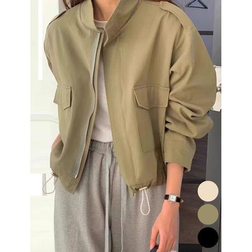 [에이치플러스몰]스트링 벌륜 소매 숏 야상 자켓 DHH-B75