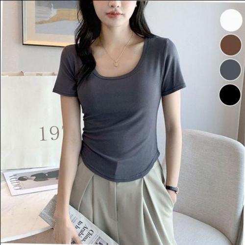 [에이치플러스몰]봄여름 여성 데일리 U넥 얇은 클래식 반팔티셔츠 고품