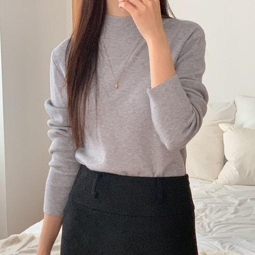 [옷자락] 여자 이너티 반목폴라 얇은 기본긴팔 무지 데일리 니트