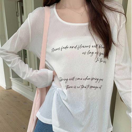 얇은 긴팔 롱 슬리브 티셔츠 레터링 영문 여성 상의 WFL0IGA