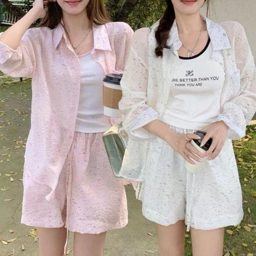 [옷자락]여자 여름 데일리 셋업 쓰리피스 나시 셔츠 반바지
