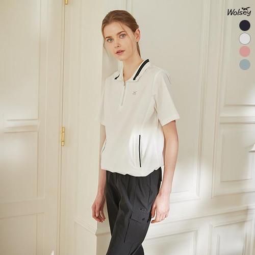 여성 3컬러 캐주얼 여름 반팔 하이넥 반집업 셋업