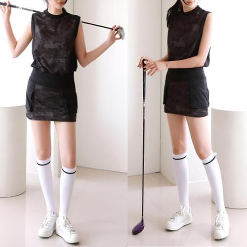 [원온골프]원온카모셋업 나시 스커트 여름 여성골프웨어세트