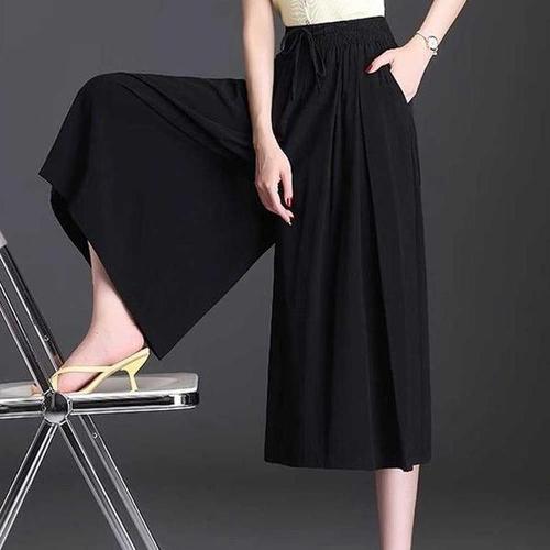 1+1 2장 여성 면 마 린넨 7부팬츠 심플 무지 베이직 일자핏 와이드팬츠 허리밴딩 반바지 루즈핏