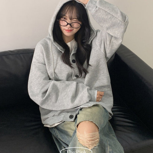 더핑크 / 카와 오버핏 버튼 핀턱 후드 자켓
