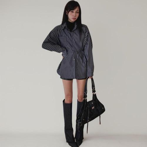 [미라클세븐]여성용 스트라이프 루즈핏 셔츠 허리끈 면혼합 남방
