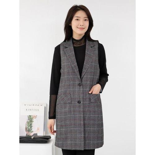 [조순희]체크 롱 정장 베스트FKSV1030
