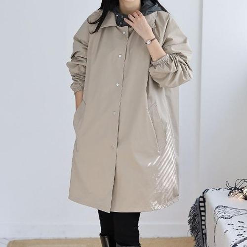 [다잇템][다잇템] 여자 후드탈부착 드로우코드 단추 야상 큰사이즈 롱 점퍼_23387490_588872