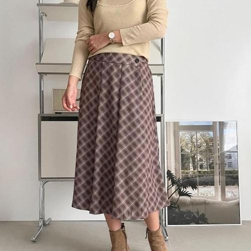 [다잇템][다잇템] 여자 아코디언 백밴딩 큰사이즈 랩치마 격자 롱스커트_23387258_588872