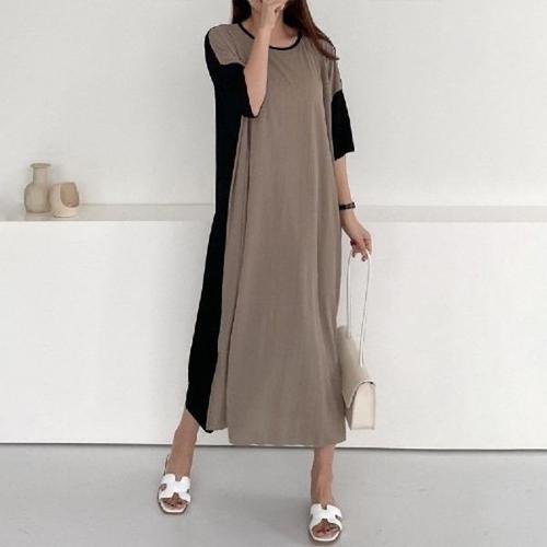 [엄지척]키큰 여자 코디 꾸안꾸 루즈핏 배색 원피스 편한옷_19869858_667501