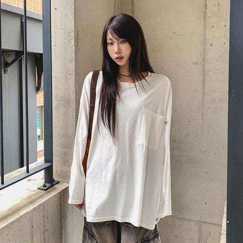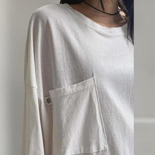 [다잇템][다잇템] 여성 미니멀리즘 주머니 워싱 큰사이즈 롱슬리브 대형 티셔츠_23460867_588872