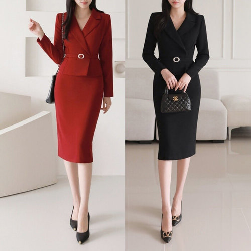[신상오픈런]링므러 투피스 정장룩 여성스러운 세트 여성 슬림핏 벨트