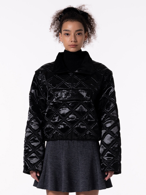 [메이크어토스트] 하이넥 글로시 엠브로이더리 패딩 탑 블랙