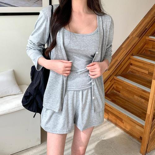 [다잇템]여자 V넥 핫팬츠 3피스 카디건 슬리브리스 세트 (10384659A)