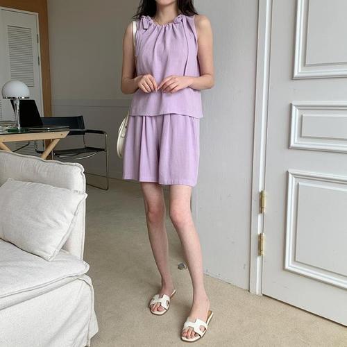 [다잇템]여자 핫팬츠 양리본 슬리브리스 입술넥 세트 (10437013A)