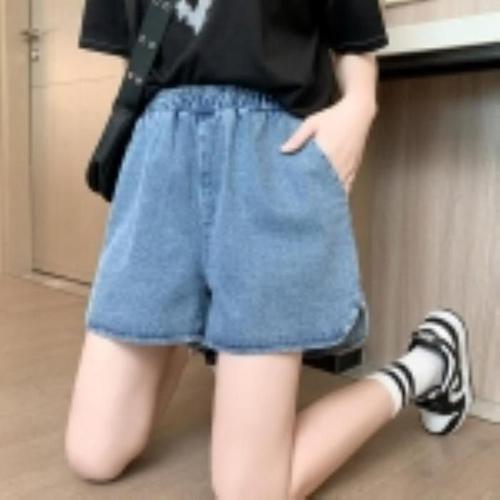 [다잇템]여자 진 핫팬츠 슬릿 고무줄 SS 파란색 반바지 (10435322A)